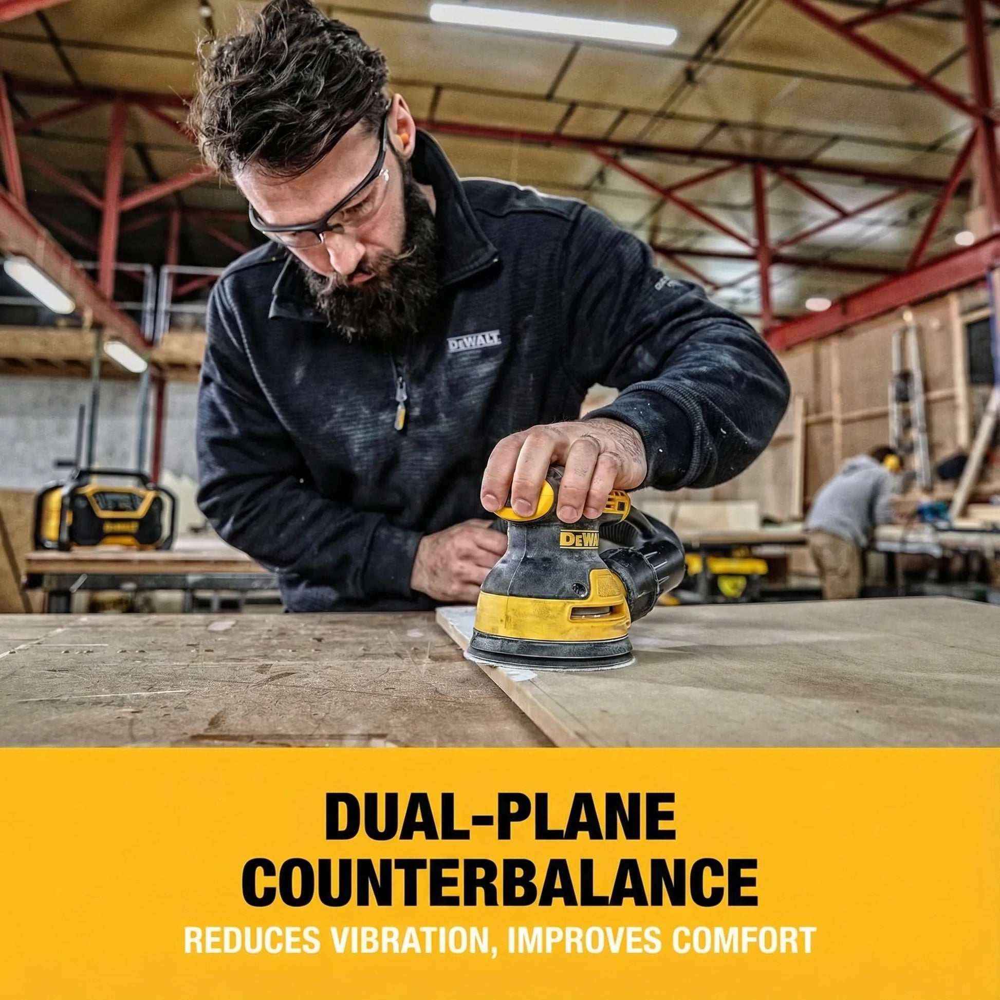 The DWE6423-QS is a compact professional random orbital sander with electronic variable speed control, designed for high-quality finishing on wood and a wide range of materials. It’s built to deliver smooth results while remaining comfortable to use during longer sanding sessions.